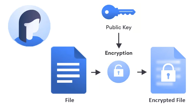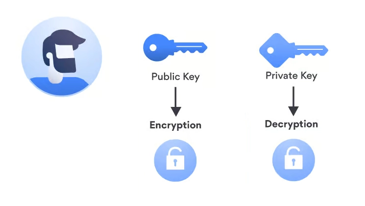 O destinatário dos dados gera um par de chaves privada e pública. O destinatário envia a chave pública através de uma rede insegura para o remetente.